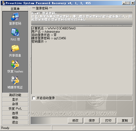 万能登录密码查看(系统密码查看器)Proactive System Password Recovery V4.1.3.445  绿色版