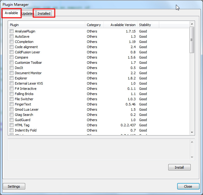 Notepad++自带了插件管理工具,Plugins -> Plugin Manager -> Show Plugin Manager-> Avaliable一栏显示当前可用的插件列表,选中你要的插件,然后点击下面的Install即可自动下载和安装。列表里的都是官方认可的插件,品质较好。当然也可以自己去网上下载插件放到目录里面去。