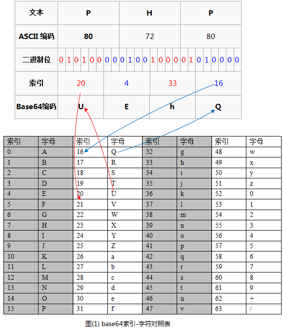 base64_encode(’PHP’) ==> ‘UEhQ’, 编码过程如下: