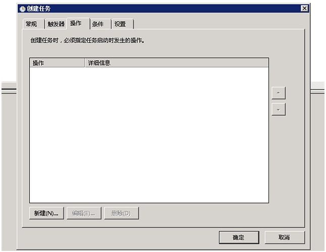 再来配置需要执行的“操作”,就是选择所写的程序或是BAT文件,这里很重要的配置是选择BAT文件后,在“起始于(可选)”这里一定要填写相应执行程序或是BAT文件的所在目录,要不然是执行不成功的。