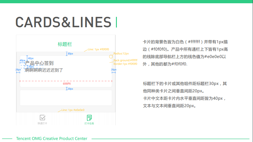 基于页面上下的比重考虑,将页卡的信息部分下移。左右滑动提示箭头去掉,因为大多数人见到页卡数字,自然会知道页面可以滑动,去掉之后让页面更简洁。距离信息的提示提出来,增加定位的一些icon的提示图标。中心的较大的打卡增加用户吸引力,在打卡的时候增加绿色外环的动态效果,增强用户交互。