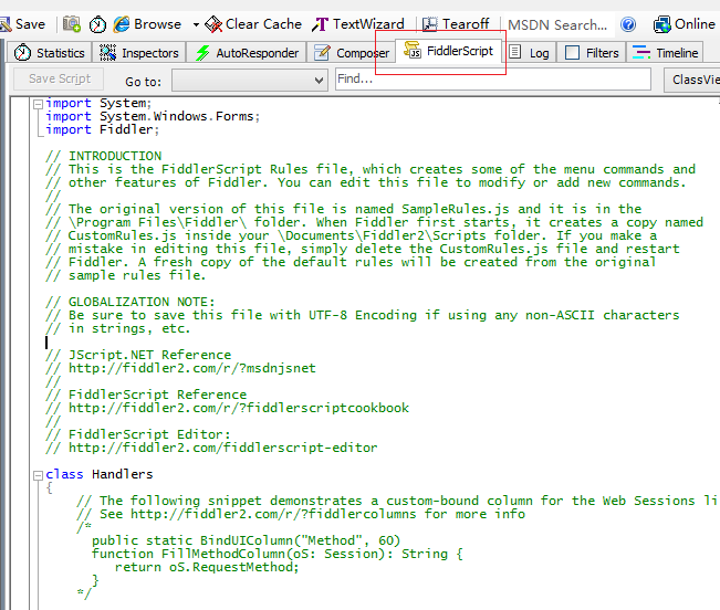 点击”download”,下载完成之后,点击安装,需要重新启动fiddler,在重新启动fiddler之后,可以看到fiddler的工具栏选项卡,多出了一个FiddlerScript选项。
