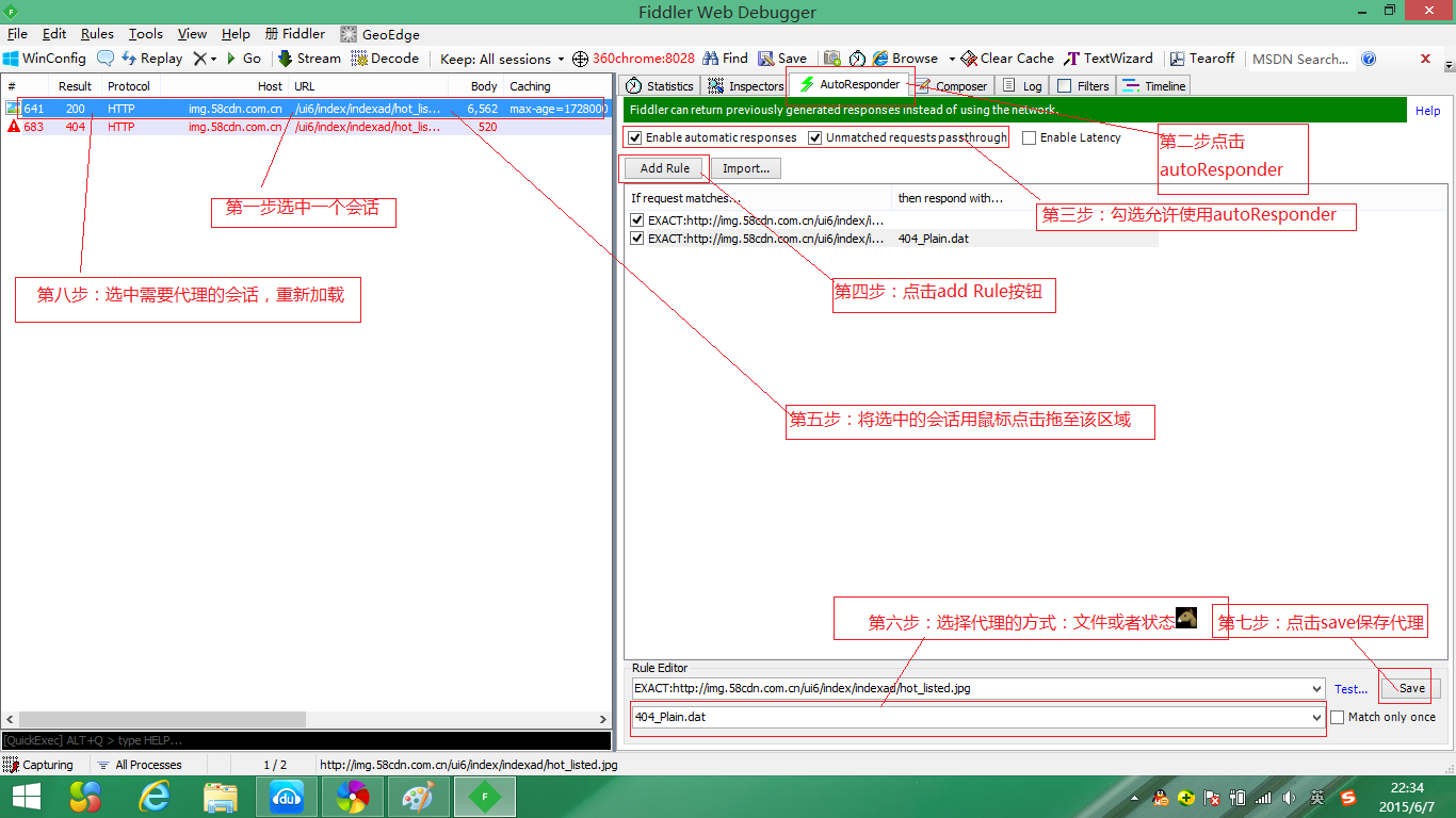 从图片当中,可以很清晰的看出,当我再次加载该会话的时候,会显示之前设置好的404代理。