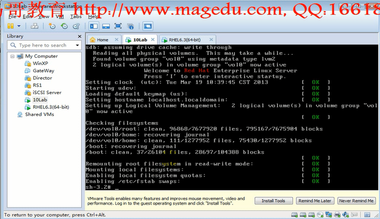 10,根据/etc/fstab,检查并挂载其它文件系统
