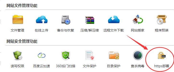 虚拟主机部署教程如下: 部署证书 首先要将域名绑定到主机上,在主机控制面板找到【https部署】按钮。 在我司申请过证书(证书在有效期内),系统会自动加载识别,直接确认部署即可。 如果没有申请证书,点击申请地址(证书申请流程)。系统识别以后直接部署即可。 第三方申请的证书。 先在SSL证书服务里面上传托管证书 注意要nginx的证书,证书文件可以直接用记事本打开,要复制粘贴正确的内容。有些地方申请的证书是.pem格式,用记事本直接打开复制内容到证书栏。 托管以后再确认部署即可。 部署https(ssl)后设置301跳转将http跳转到https 服务器相关部署请参考: