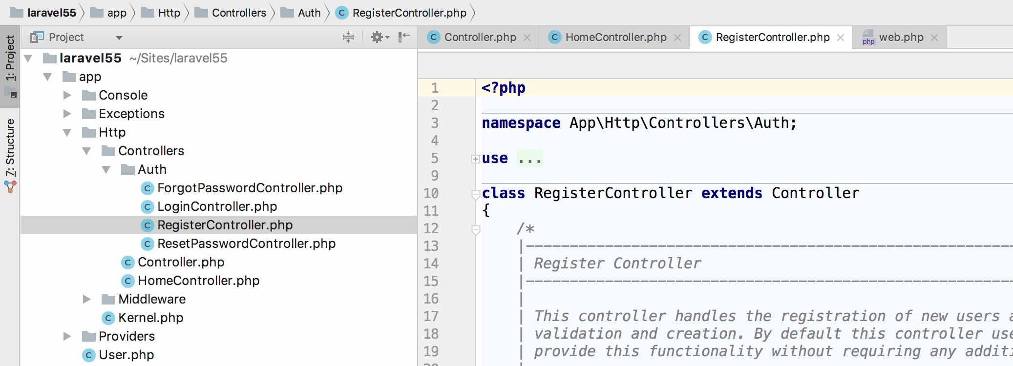 注:想要快速上手?只需要在新安装的 Laravel 应用下运行 php artisan make:auth 和 php artisan migrate,这两个命令会生成用户登录注册所需要的所有东西,然后在浏览器中访问 http://your-app.dev/register 即可。