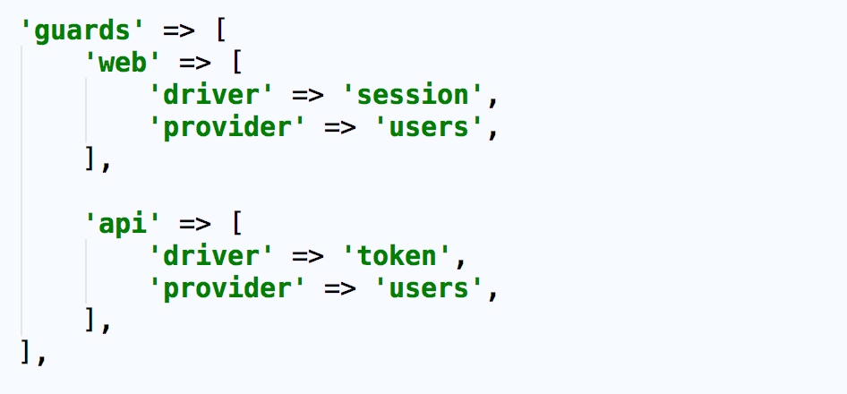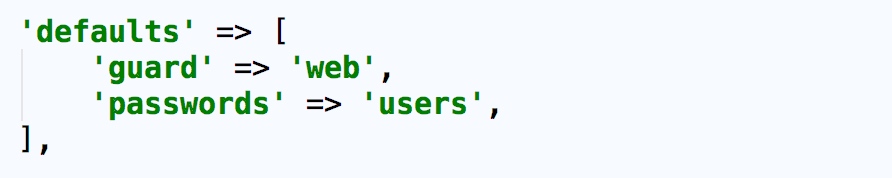 如果没有指定的话,默认 guard 是 web,这也是配置文件中配置的: