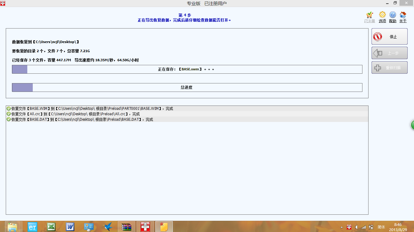 第四步:正在导出恢复数据,完成后请仔细检查数据能否打开
