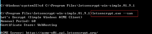 3.进入解压文件夹,运行 letsencrypt.exe --san 命令
