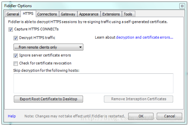 这一步是为了让Fiddler能捕获HTTPS请求。 如果你只需要截获HTTP请求, 可以忽略这一步