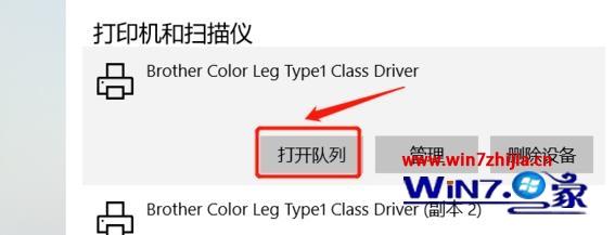 3、然后,选择显示“打印机和扫描仪”分页,并点击“打开队列”按钮进入;