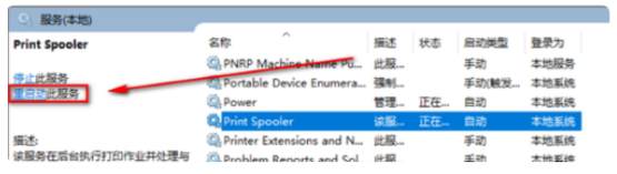 从打开的“服务”窗口中,找到“Print Spooler”服务项并右击,从弹出的右键菜单中选择“重新启动”即可解决问题。