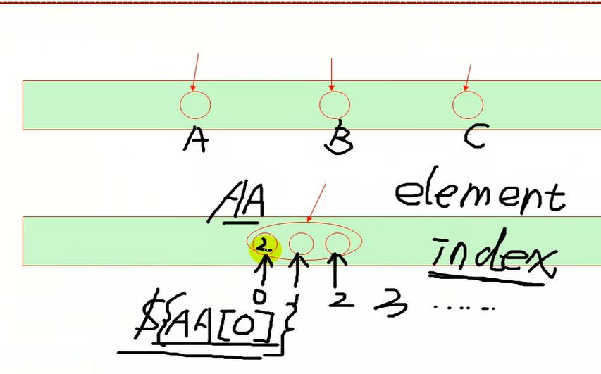 引用数组变量 使用 ${AA[0]} 用美元符,用大括号,用下标