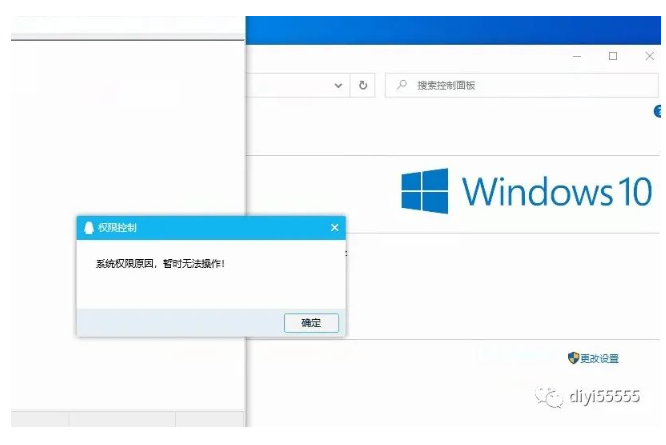 最近,看到有不少网吧维护朋友反馈“QQ远程控制Win10系统提示“系统权限原因,暂时无法操作””,经过测试发现一些简单的操作是不会提醒,但涉及到系统的功能设置及软件安装调试,就会出现下图的提示,无法再继续远程操作(点不动),下面就来为大家解决这个问题。