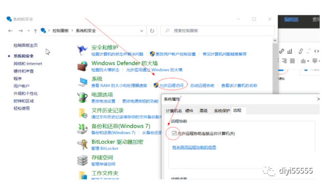 2、点击【允许远程访问】,在弹出的“系统属性”窗口中勾选“允许远程协助连接这台计算机”并确定,如图所示: