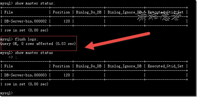 mysql> show binlog events in 'DB-Server-bin.000012';