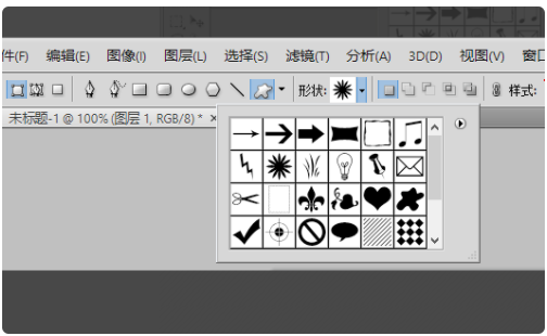 2、单击上方“形状”中的小三角,滑动滚动条选择需要的形状。