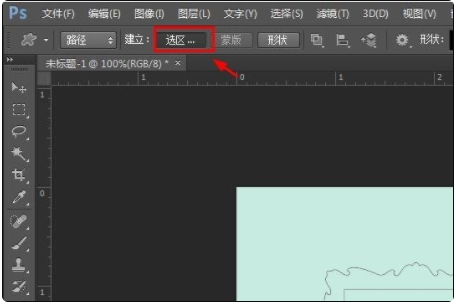 4、单击上方“选区”按钮,在弹出的“建立选区”对话框中单击“确定”按钮,形状变成选区。