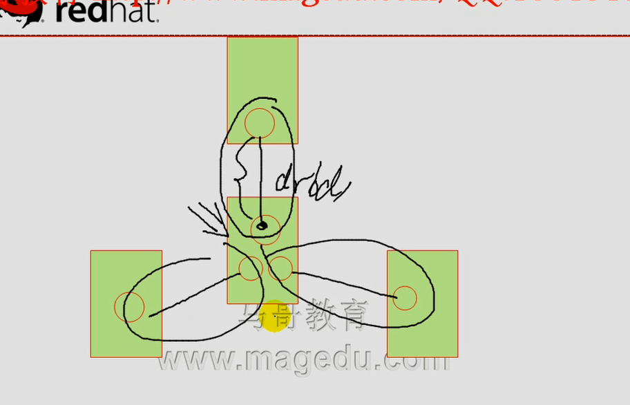 DRBD可以理解成过滤器,对那些非DRBD的磁盘的读写操作,它是不关心的,非DRBD的读写是绕过DRBD的,只要是写发往DRBD对应的磁盘设备的,DRBD会复制一份,通过TCP/IP协议栈经过网卡驱动,传给另外一个对应节点上的网卡返回给网卡驱动,解码之后,解码之后交给TCP/IP协议栈,TCP/IP协议栈交由DRBD,DRBD才最终存储在与之对应的磁盘设备上