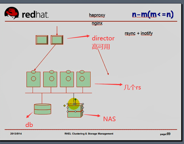 如果我们的director能够检查后端服务(负载均衡的rs上的服务)的健康状况,服务故障了,干脆不让它启动了,将所有请求重新分发到其它节点上去,也行的吧,也能提供后面的服务高可用的吧,,,这些节点用不用做成高可用的服务集群???,把web都要做成服务,在每个节点上都克隆一份,,,,,都启动起来,,,,,,,,,,,,,,,,,这样管理起来非常麻烦,,,光是资源定义,资源约束都是非常麻烦的,,,,将来很可能在任何地方出故障的,,,对web服务器集群来讲,通常不应该这么做的,,