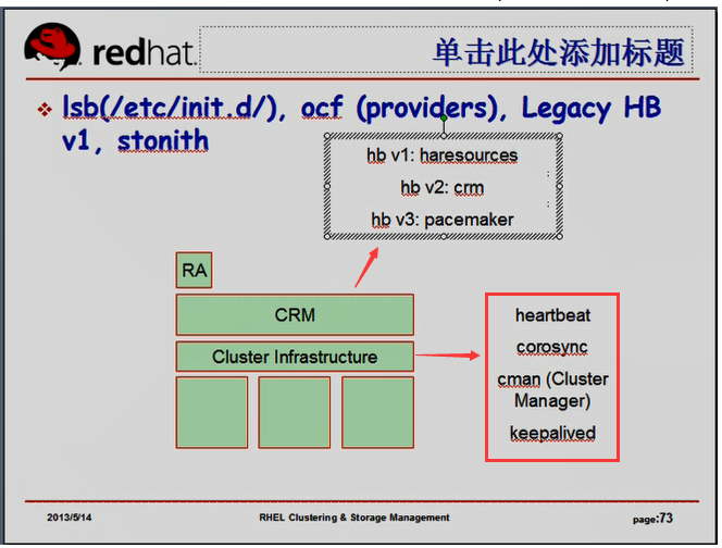 RHCS的信息层,资源管理器概念与heartbeat,corosync概念差不多,ra的概念与heartbeat,corosync的概念有点不一样,,
