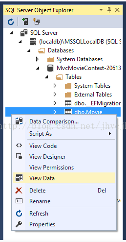 从View菜单,打开SQL Server Object Explorer (SSOX).
