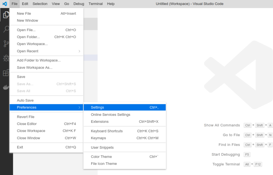 1、选择菜单 File -> Preferences -> Settings