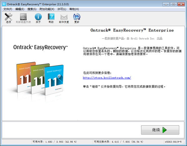 那么功能如此强大的EasyRecovery是如何实现Excel表格误删恢复的呢?首先在中文官网激活EasyRecovery,安装运行,单击“继续”开始。