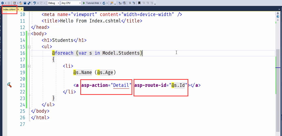 asp-action asp-route-后面跟的是参数名 ,比如 asp-route-id, asp-route-name