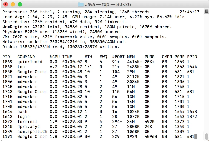 作用:显示这台计算机上有哪些进程,它们占据了多少内存、CPU、负载等