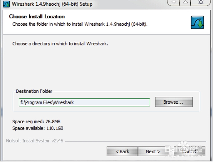 如图2-1-4所示wireshark询问我们的安装位置。我们选择F盘点击“Next”;