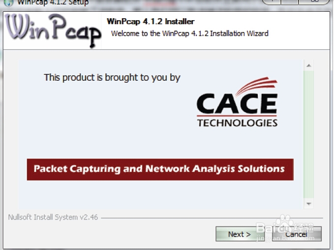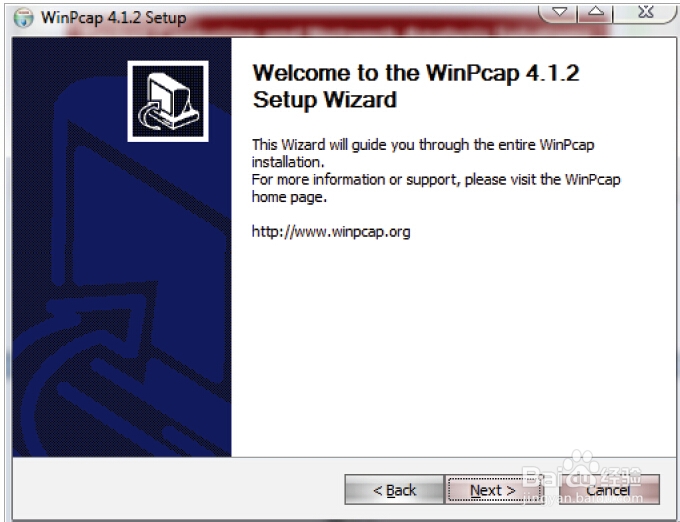 如图2-1-7所示我们进入到WinPcap的安装界面点击“Next”进入到下一步安装;