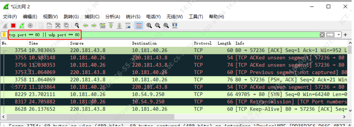 ip.addr == 10.181.40.26 #这个ip地址是不分源ip地址和目的地ip地址