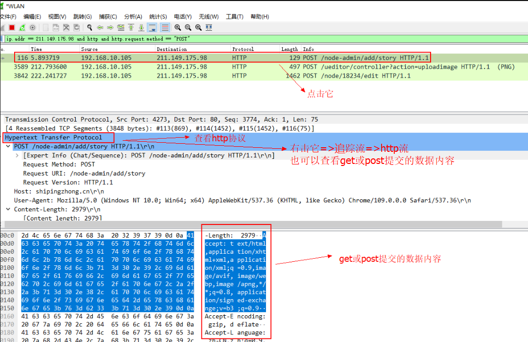 http.request.method == "POST" #post过滤,post必须为双引号括起来的大写