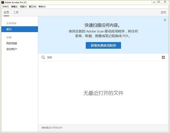 11、adobe acrobat pro dc试用界面如下,无异常后直接关闭该软件。