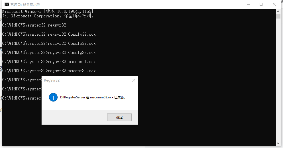 以管理员身份运行 CMD,执行 regsvr32 xxx.ocx 命令,注册 ocx文件。