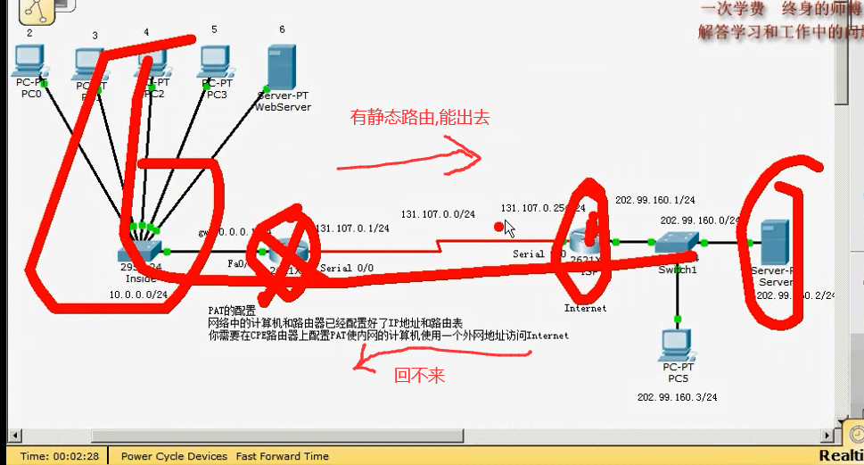 配置 PAT: 私网ip:port与公网ip:port 对应关系,路由器得记住