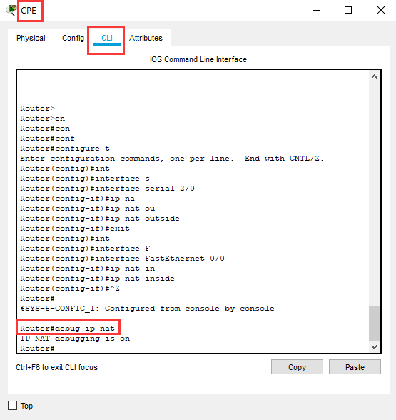 Router(config-if)#ip nat inside #3) 指定这个网卡接口为内网