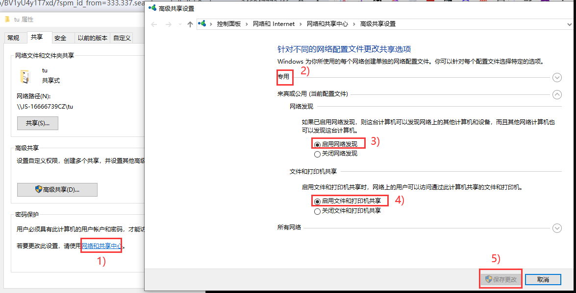 2) windows  下设置共享
