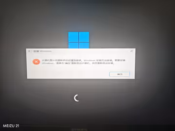 如题,本人今天重装系统时遇到了“Windows 无法完成安装。若要在此计算机上安装 Windows,请重新启动安装。”此错误提示,按照网络上的办法尝试过修改注册表和命令行输入oobe跳过错误(卡在“海内存知己”那里转圈圈)都无法解决问题,下面开始分享解决方法: