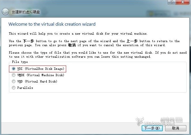 ⑶.4 选择 VDI (VirtualBox Disk Image)