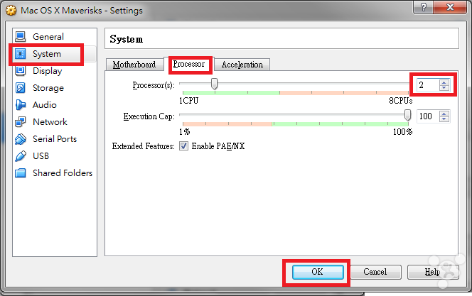 ⑷.2 系统 -> 处理器, 选择双核 CPU数量= 2