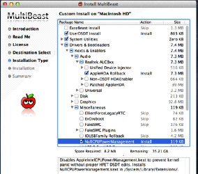 ⑸.9 解压后的文件夹内, 双击安装 MultiBeast 4.6.1.pkg, 安装时勾选如下 4项