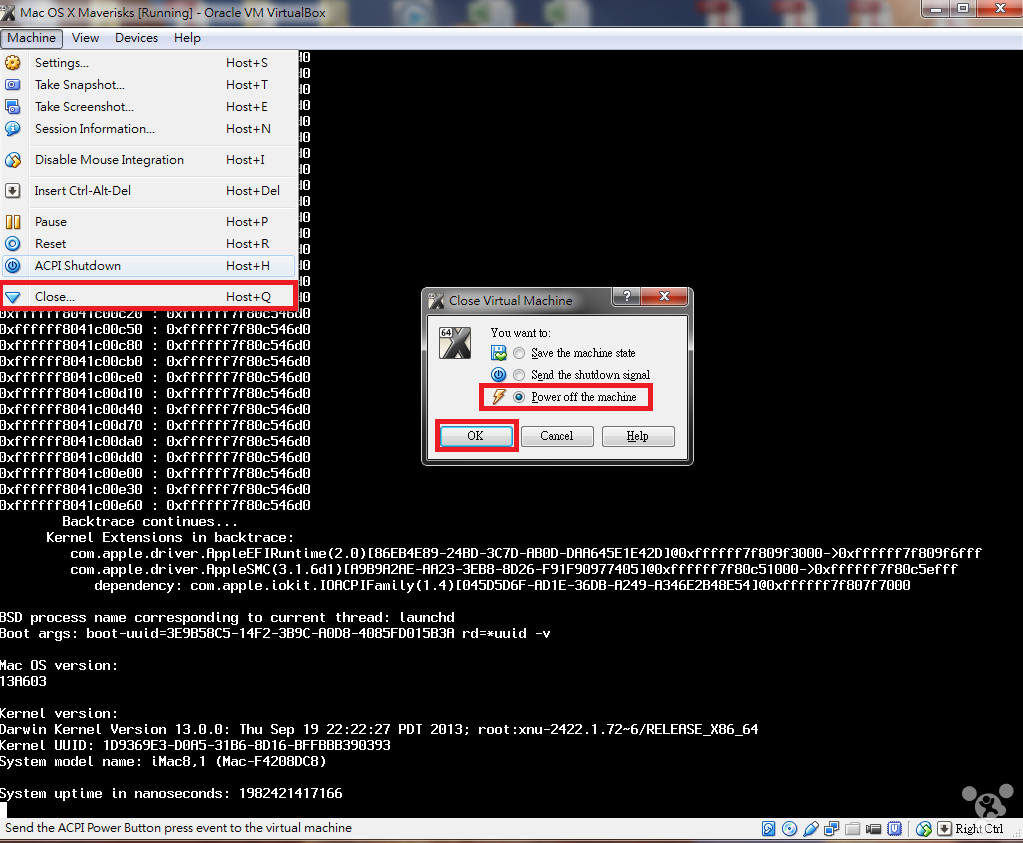 系统更新 10.8.2 后要重覆步骤 ⑸.9 至 ⑸.11 及关闭 Mac OS X 10.8 虚拟机后重新启动。