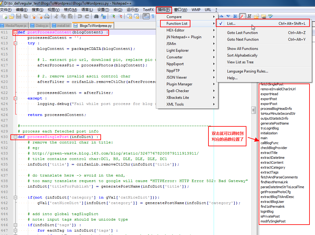 另外Notepad++拥有很多非常强大的插件,熟练使用其中一些插件可以大幅度提高工作效率。在这里简单介绍本人常用的几款实用插件: