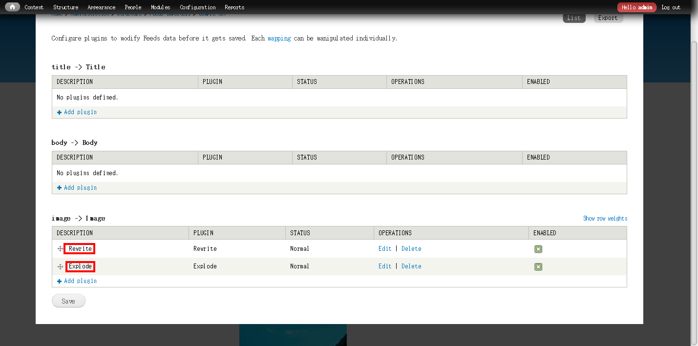 自定义模块编写OK!就这么简单,让我们看看Feed后台的界面吧。(别忘了清除drupal的缓存)