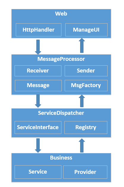 但是微信公众平台与以往的项目有所不同。其实现不再基于计算机底层实现。从应用层面讲,需要对业务的上层,即显示层和前端逻辑层、通信层,进行封装,下面才是真正的业务系统。从整体考虑,系统通过设计通用微信服务框架,支持所有业务。微信服务框架的改动,只与微信接口的调整做相关。多个业务系统,公用一套微信服务框架。这里介绍一种实现架构,如有欠缺,欢迎批评指正。