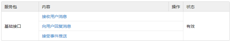 收发消息 | 接受和发送消息,包括: 1 文本消息 2 图片消息 3 语音消息 4 视频消息 5 音乐消息 6 图文消息 | 有 | 有 |