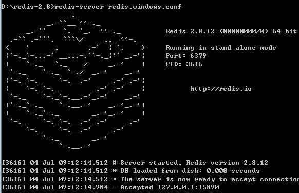 之后再运行redis-server redis.windows.conf 就可以启动了: