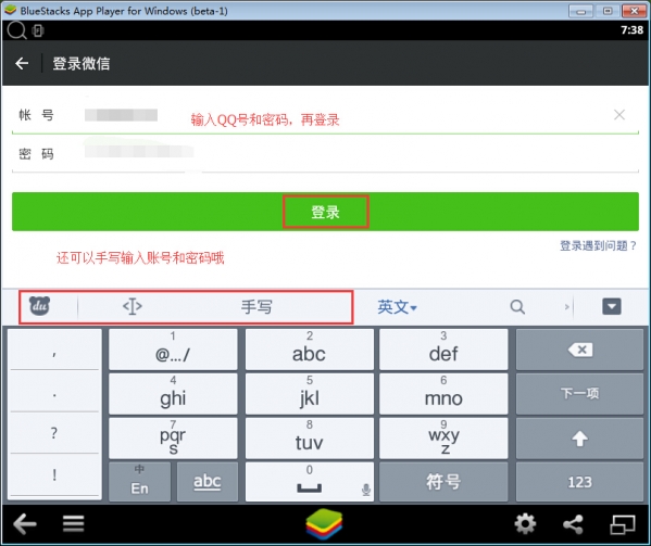 5.在此小编以qq号登录来作示范。可直接在键盘上输入qq号和密码(小键盘上的数字不行)